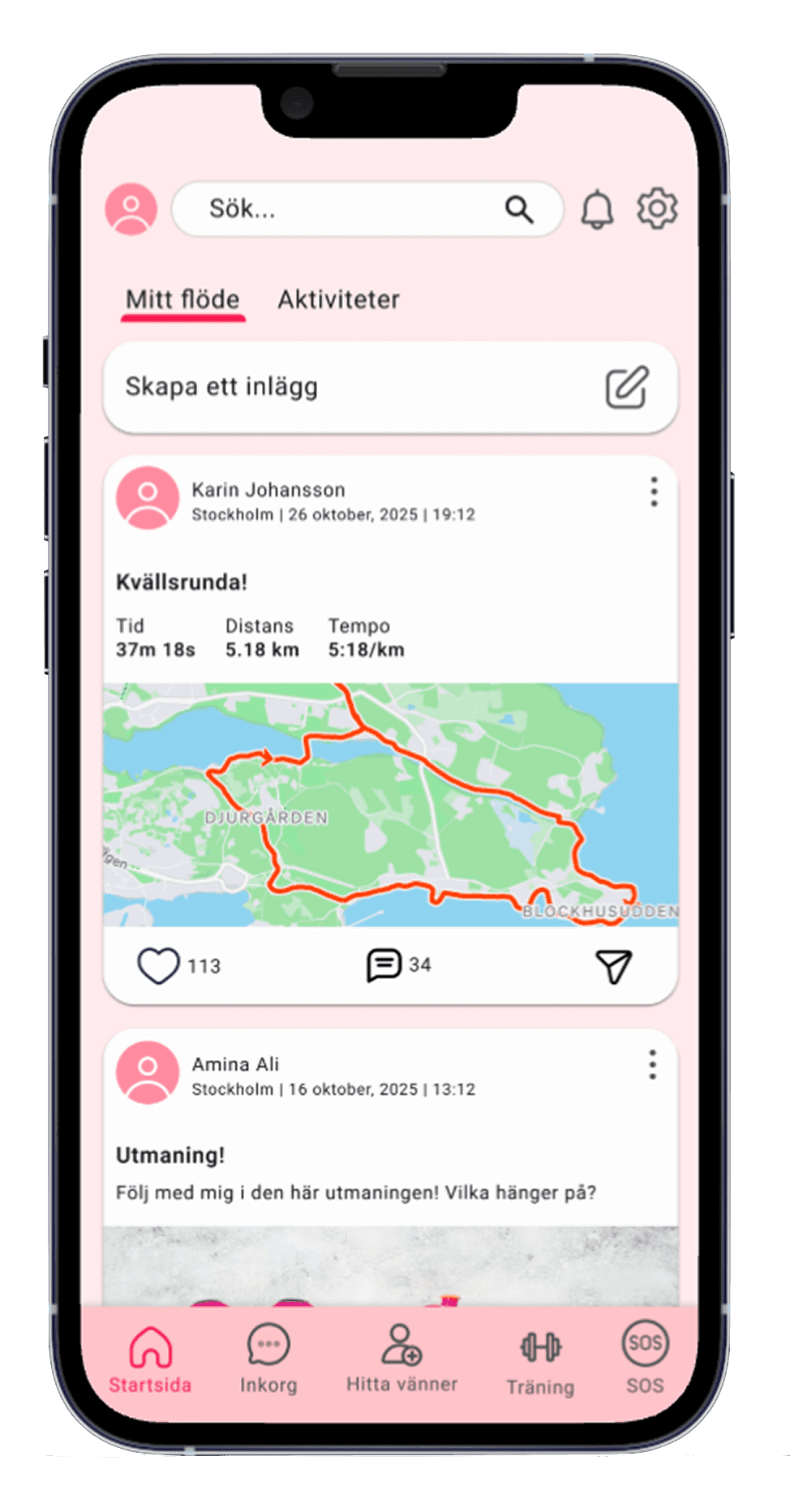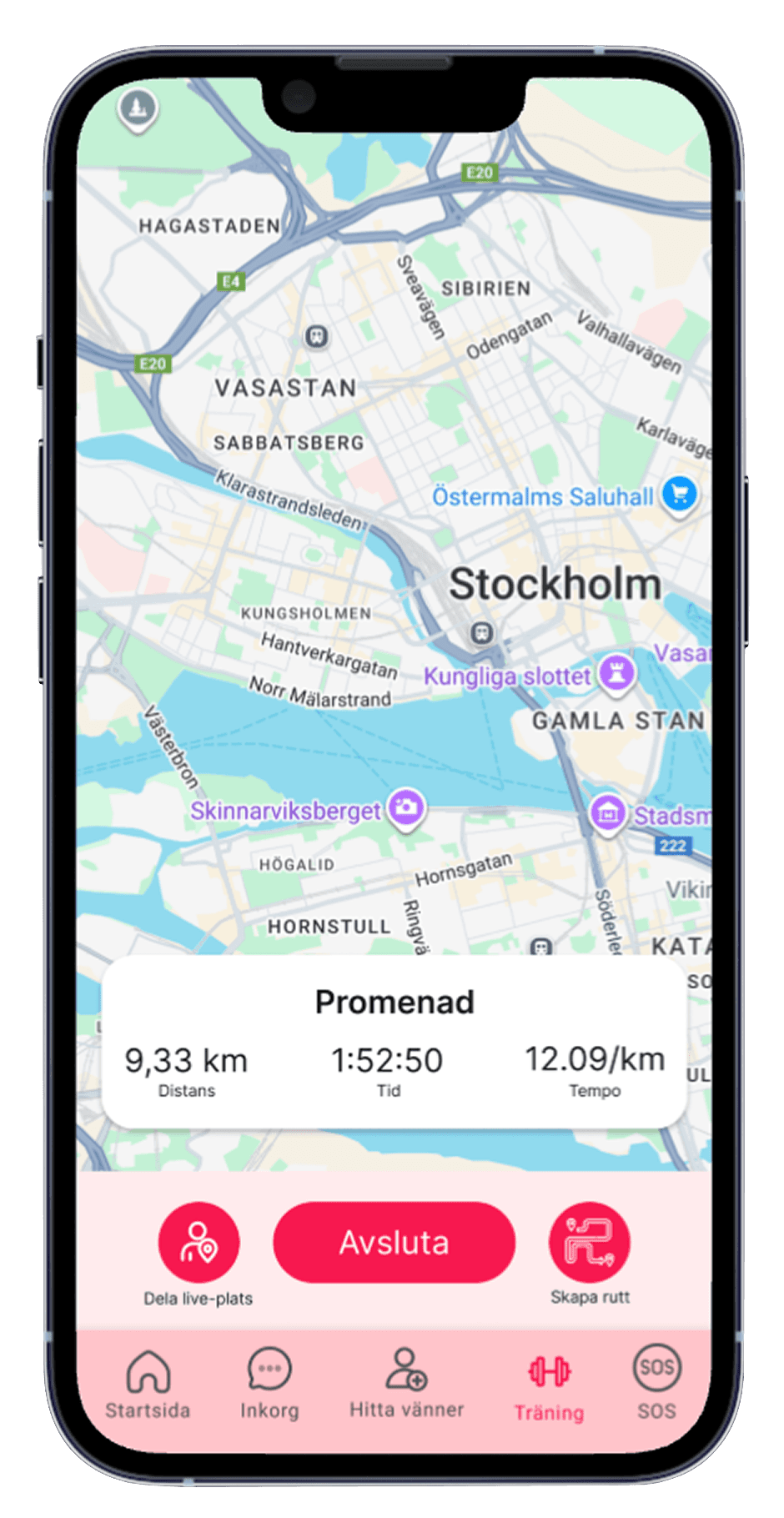 I kursen fick vi i uppgift att ta fram ett appkoncept från idé till testad prototyp. Vi valde att fokusera på tryggare utomhusträning, eftersom många kvinnor upplever otrygghet och därför avstår från att träna ensamma.